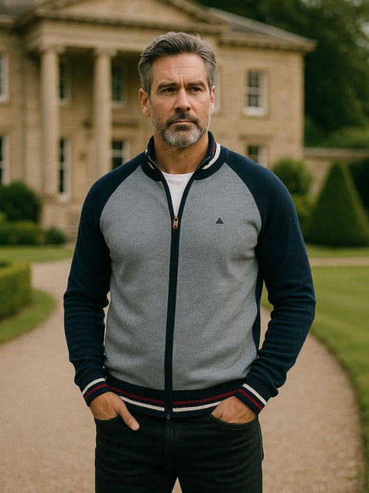 Farbblock Cardigan mit Stehkragen und Reißverschluss - Cross & Crown