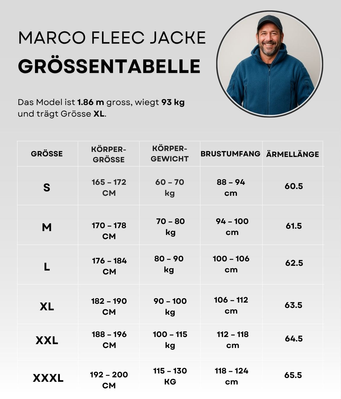 Bleib warm, robust und stilvoll mit der Marco Fleece Jacke – der perfekten Kombination aus Komfort und Langlebigkeit.
